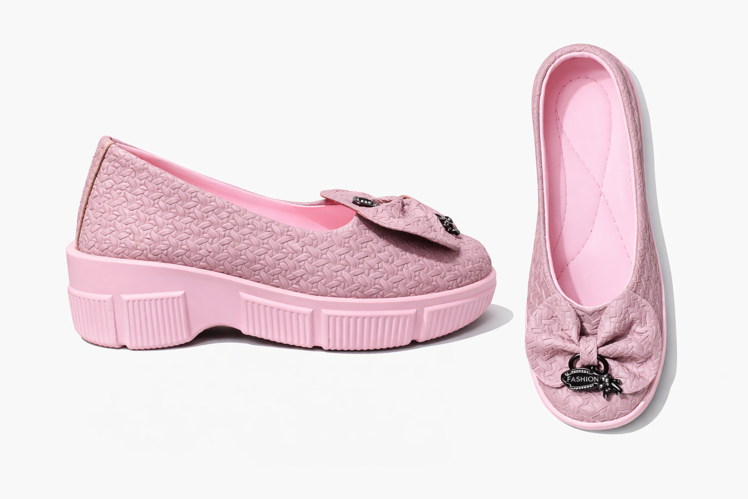Girls Pink Textured Panchu Pink Shoes